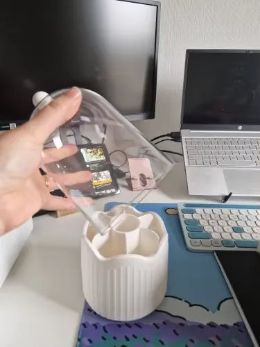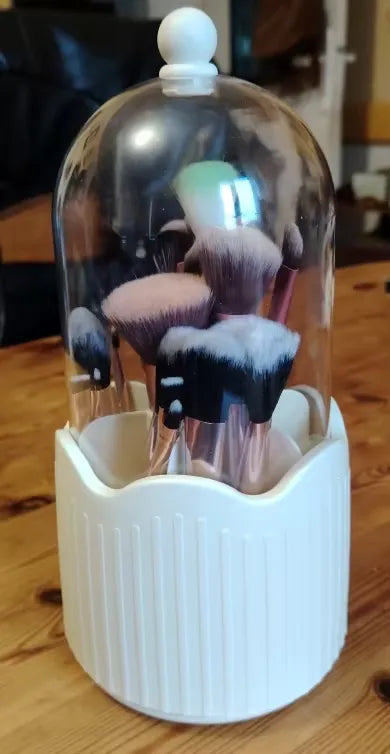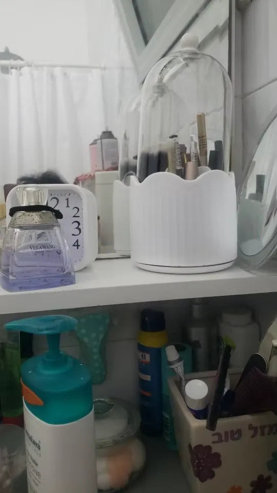"OMG this makeup holder is a lifesaver! Fits all my brushes and lipsticks neatly. Love the 360° rotation, makes getting ready so much easier. Plus, it's super cute on my vanity! Who knew organizing could be this chic? Highly recommend for keeping your counter clutter-free. 💄💅😊"